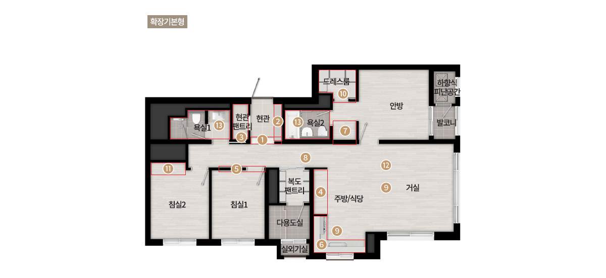 가구 및 인테리어 유상옵션은 발코니확장형 세대에 한하여 선택할 수 있습니다.